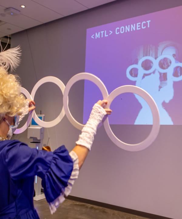 Un photobooth promotionnel pour vos événements qui permet aux visiteurs de se faire photographier dans une pose dynamique devant un décor thématique.